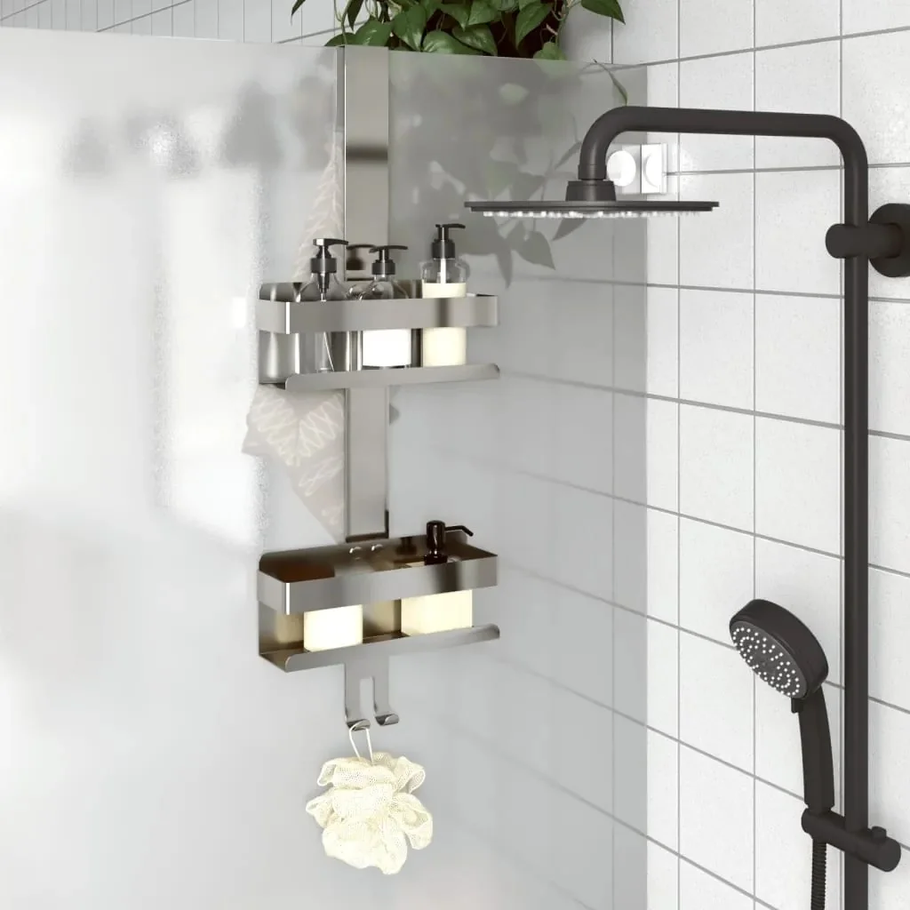 Moderní a praktický závěsný držák do sprchy z odolné kartáčované nerezové oceli 304 je ideálním řešením pro zvýšení úložného prostoru ve vaší koupelně. Jeho robustní konstrukce odolává korozi a dlouhodobě si zachovává elegantní vzhled, což ocení každý, kdo hledá spolehlivost a styl. Díky chytrému designu 2 v 1 nabízí nejen prostor na zavěšení ručníků a županů, ale také praktické háčky na houbičky či holicí potřeby, což vám usnadní každodenní používání. Tento úložný systém je dostatečně prostorný pro sprchové gely, mýdla nebo šampony a díky maximální nosnosti 20 kg pojme všechny vaše nezbytnosti. Snadná montáž bez vrtání a vhodnost pro sprchové dveře do 25 mm tloušťky z něj činí šikovného pomocníka, který se snadno přizpůsobí vaší koupelně. Navíc balení obsahuje dva držáky a praktickou samolepicí podložku z EVA pěny, která chrání povrch vaší sprchy před poškrábáním a zajišťuje pevné uchycení.