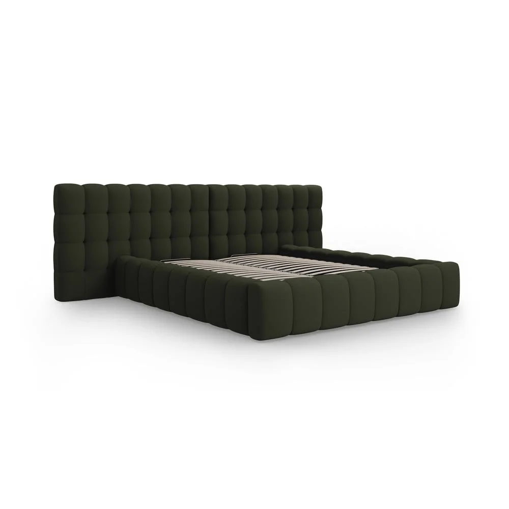 Zelená čalouněná dvoulůžková postel s úložným prostorem 200x200 cm Dvoulůžkové postele