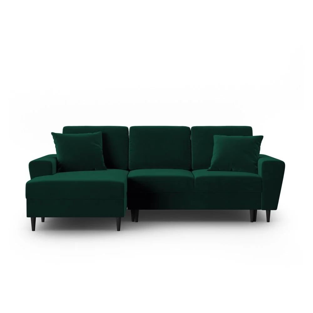 Zelená sametová rohová pohovka Kyoto s úložným prostorem a rozkládáním Rohové sedací soupravy