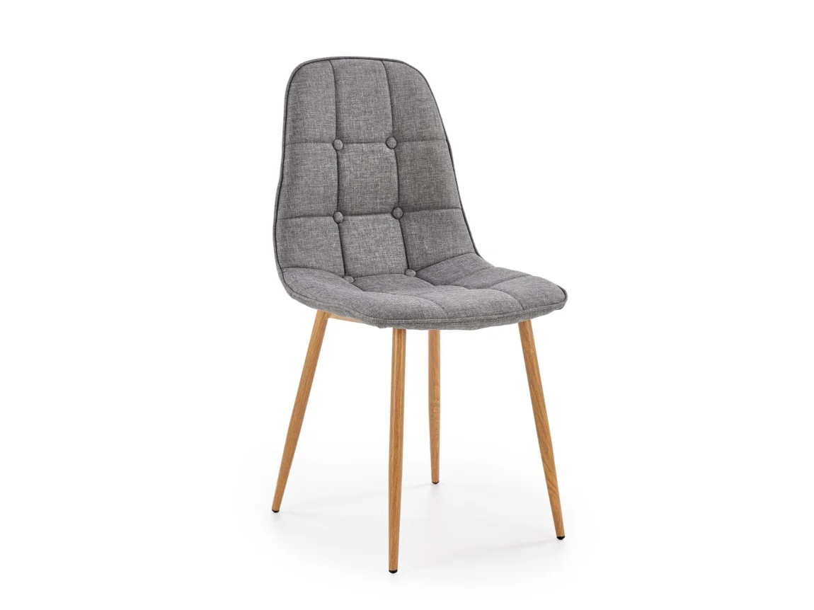 Židle Tirnavia v neutrální šedé s nohami v odstínu dub medový dodává jídelnímu i pracovnímu prostoru jemný kontrast a elegantní nádech. Rozměry: 44 cm šířka × 87 cm výška × 56 cm hloubka; výška sedu 48 cm.