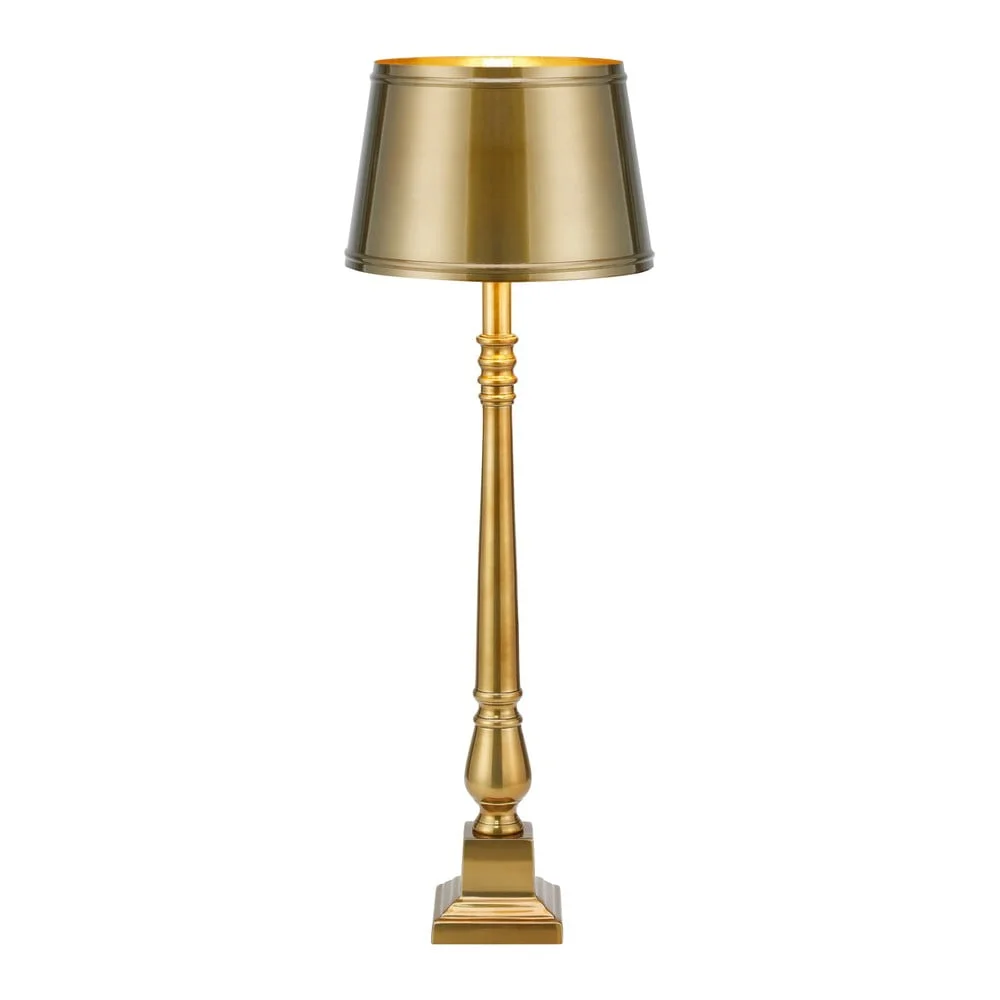 Elegantní zlatá stolní lampa s moderním kovovým stínidlem, která dodá vašemu interiéru luxusní vzhled. S výškou 66 cm je ideální jako dekorativní a zároveň funkční osvětlení do obývacích pokojů, ložnic nebo pracovních koutů.