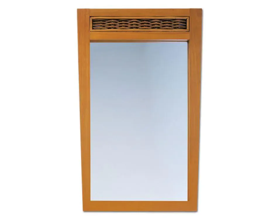 Zrcadlo Athena se vyznačuje teplým medovým odstínem, který dodá interiéru útulný nádech. Rám tvoří kaučukové dřevo a dole ho doplňuje ozdobný výplet z ratanu, který dodává přírodní charakter. Je vhodné jako stylový doplněk do ložnice, dětského i studentského pokoje. Kromě estetického dojmu zrcadlo odráží světlo a opticky zvětšuje prostor, což z něj dělá praktický a nadčasový doplněk do každého interiéru.