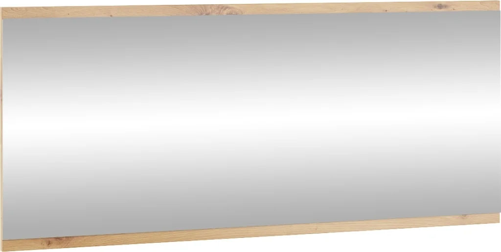 Zrcadlo z řady ORSOLA je upevněné na desce z lamina, což vytváří stabilní podklad a čistý vzhled. Rozměry: 120 × 50 × 2 cm (š × v × h). Barva odstínu dub artisan dodává interiéru teplý a přírodní dojem.